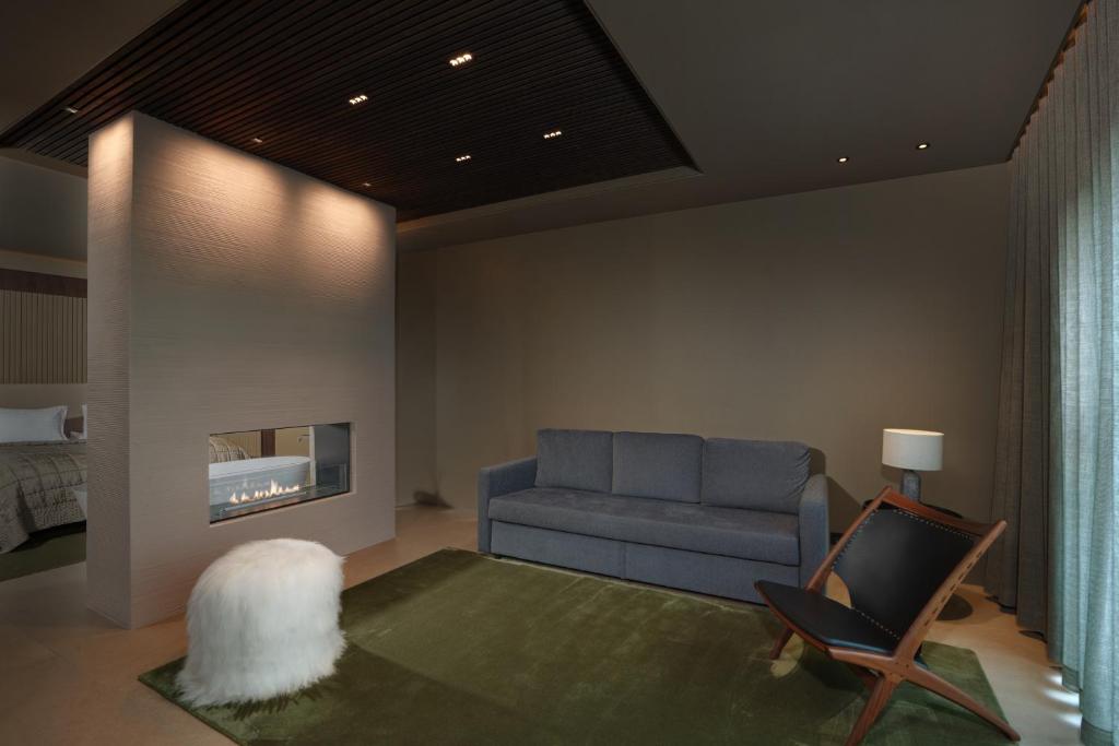 If booking the suite, you can also enjoy a warm soak in the freestanding tub while a one-touch fireplace lights up the ambiance.