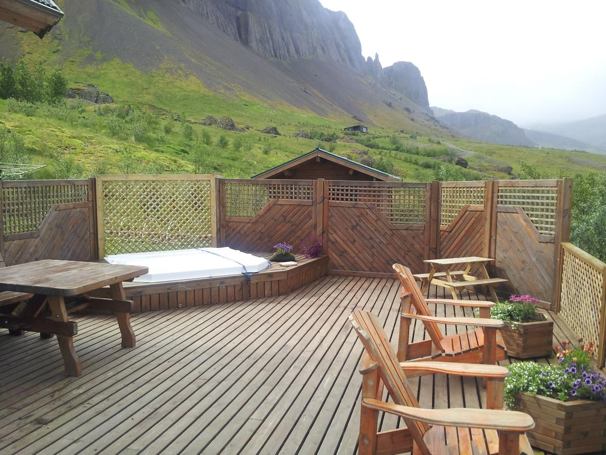Vindheimar Holiday Home enjoys a stunning location. It is situated on the lower slope of a mountain and has magnificent views over a river and the mountain range in the background.