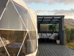 The Eyja Mork Glamping Dome offers a high-quality camping-style experience amid gorgeous surroundings in the South Iceland countryside. It's ideal for those seeking an immersive nature experience and a touch of luxury.