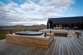 Studlastrengur – Luxury Private Villa is located in a rural area of South Iceland, outside the town of Sefloss and near the small village of Fludir. Surrounded by expansive landscapes of green fields, lava-formed hills, and distant mountains, this accommodation offers a classic Icelandic countryside experience.