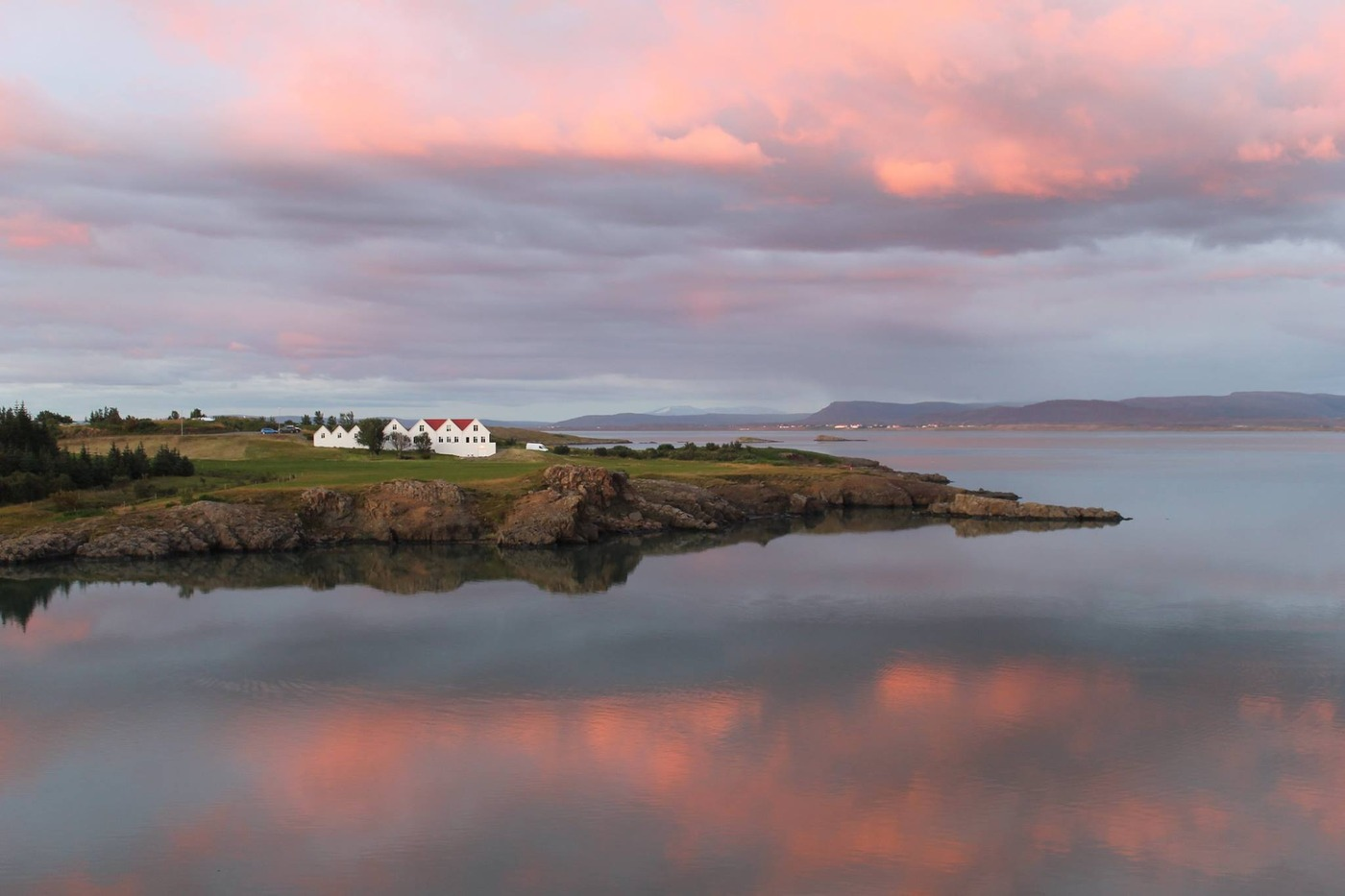 Bjarg Borgarnes is on the outskirts of Borgarnes, a town in West Iceland. Borgarnes is on a small peninsula on the edge of the Borgarfjordur fjord and the Atlantic Ocean. It’s around 47 miles (about 75 kilometers) north of Reykjavik.