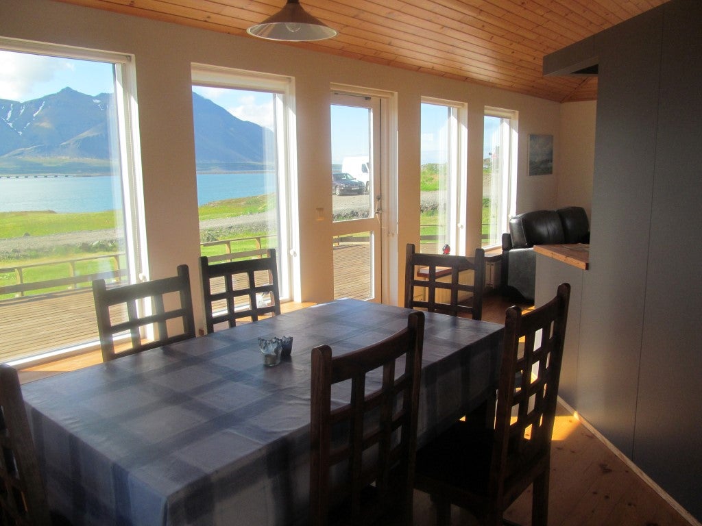 Finally, there’s a private cottage behind the farmhouse with two double rooms and a sofa bed. The cottage has a bathroom, kitchen, and living room. It also boasts a stunning view of the Borgarfjordur fjord.