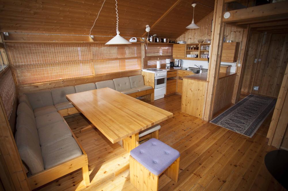 Glaðheimar 7 is a rustic-themed holiday cottage nestled amidst nature, giving you a taste of true Icelandic country life along with the amenities of home. This two bedroom cottage has a master bed to sleep two in one room, a bunk bed in the other and another bunk bed in the living area, sleeping 8 guests in all.