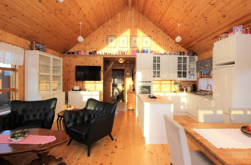 The cabin offers quiet seclusion only 5.5 miles (9 kilometers) from the town center, with easy access to local sights, services, and scenic nature.