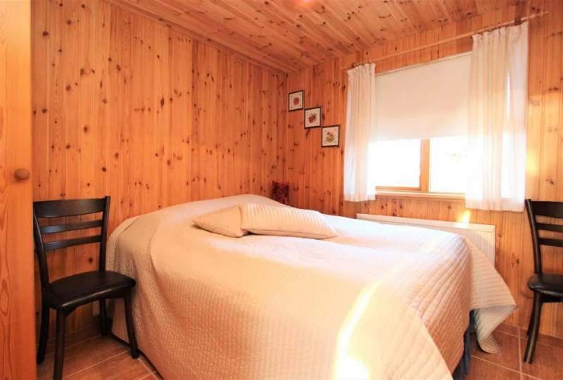 The cabin features a furnished garden and terrace where guests can enjoy meals outdoors or simply relax while taking in the view. It’s a peaceful spot to start the morning with coffee or unwind in the fresh evening air after a day of exploring.