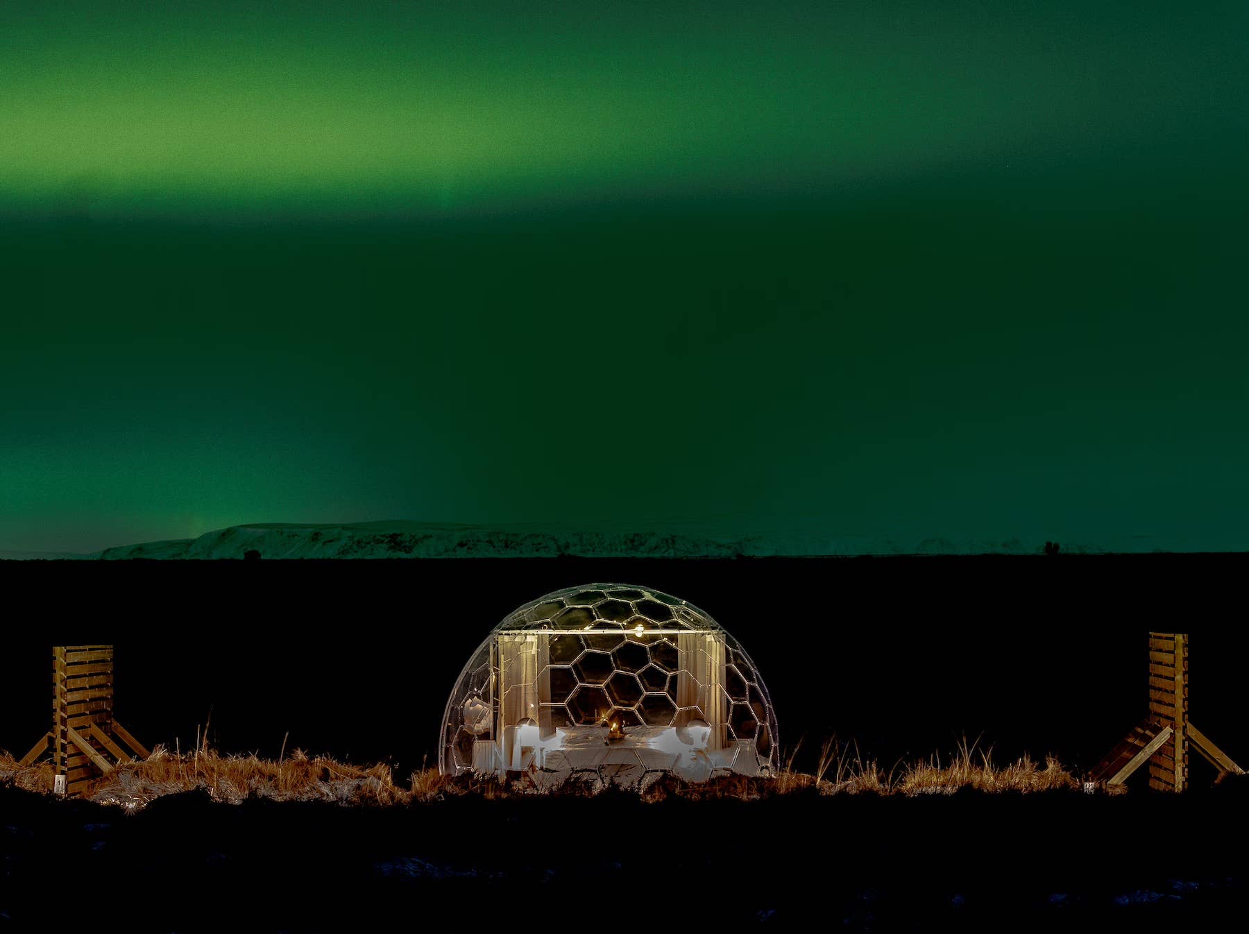 Experience the magic of sleeping under the Arctic sky in a transparent dome in Northwest Iceland, where comfort meets nature, and the northern lights may appear right above you. Check availability now by choosing a date.