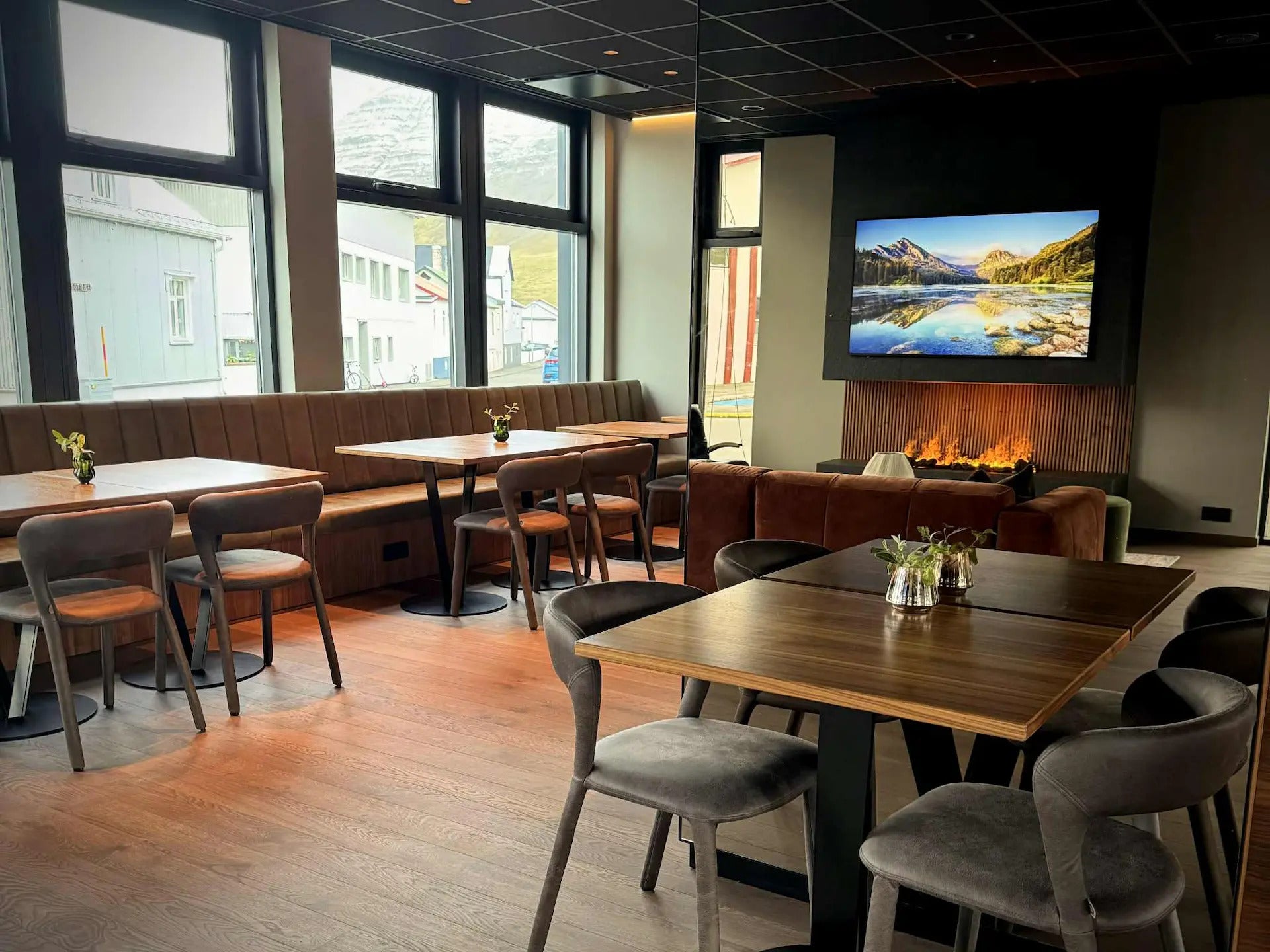 All rooms offer panoramic views of Olafsfjordur town and the surrounding mountains. Each includes a flat-screen TV, a wardrobe, a desk and chair, blackout curtains, and full soundproofing for peaceful sleep. Wheelchair access is available, and an iron with an ironing board can be provided on request.