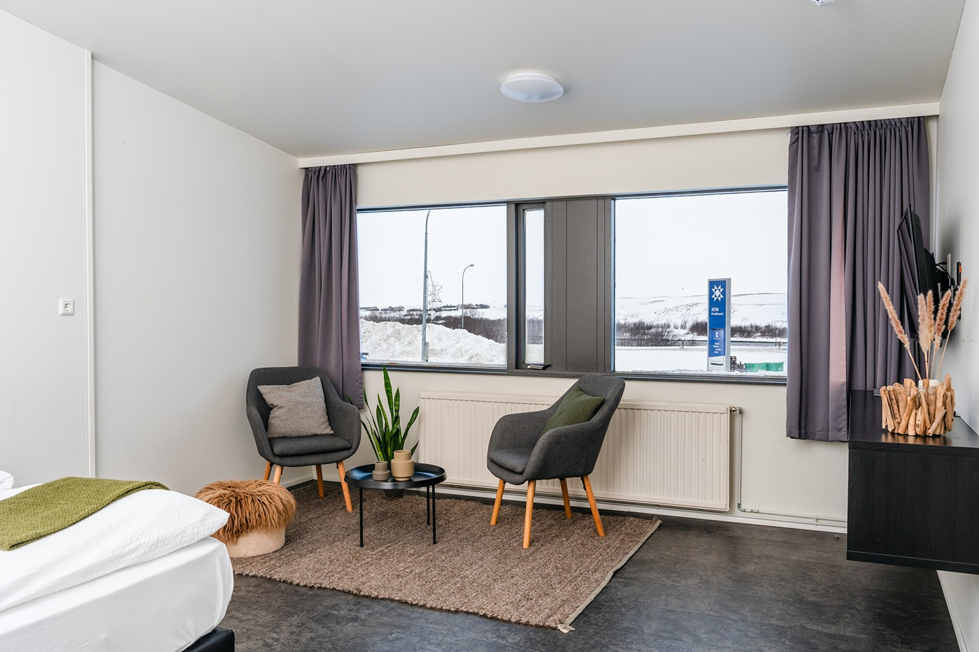 Last but not least is the deluxe suite, the most spacious and luxurious room type in Stracta Hotel. Booking a deluxe suite gives you 60 square meters of space, with a bathroom, a bathtub, and a hot tub for top-notch relaxation and privacy. Moreover, you’ll get a sitting area and a comfortable and luxurious bed to help you re-energize after a long day of exploring South Iceland.