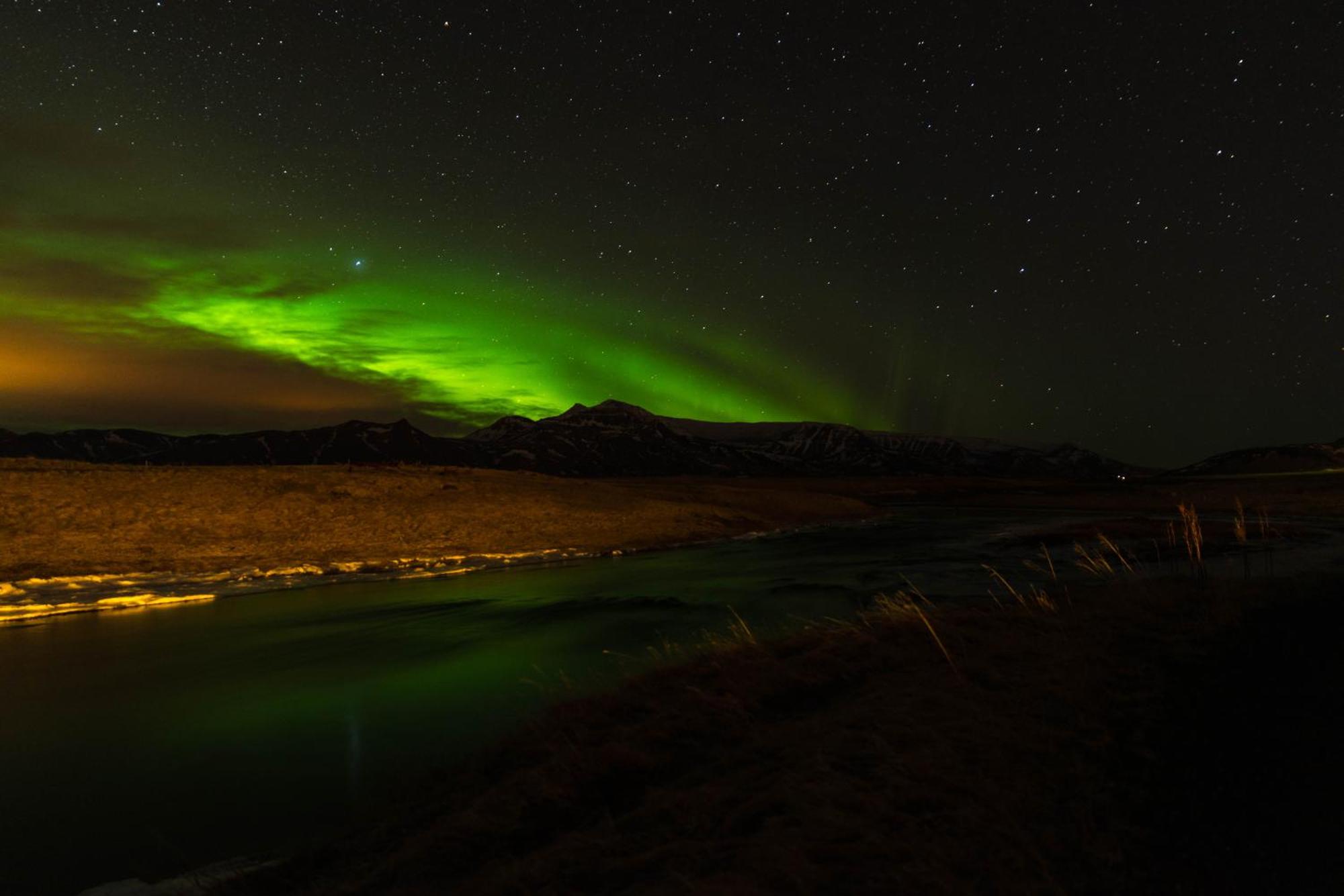 During the winter, when the conditions for the aurora to dance in the night sky are good, Hótel Laxárbakki is well situated in the countryside to watch the northern lights in all their glory. Guests can enjoy the show from the hotel's hot tub.