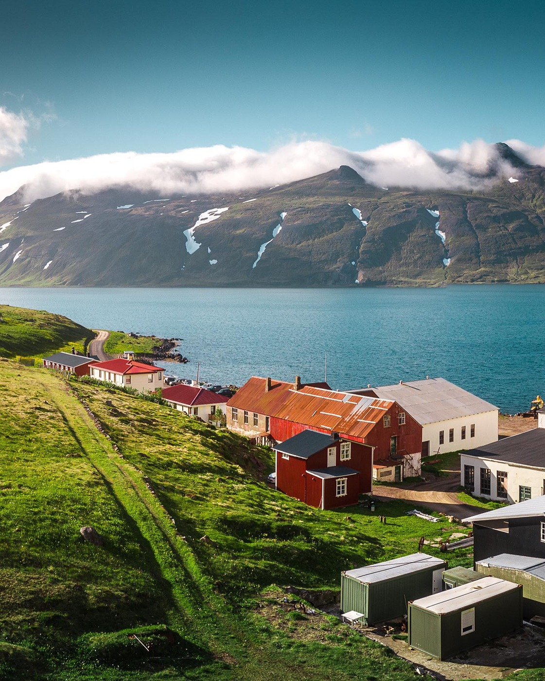 Not far from the factory is Djupavikurfoss, the village’s signature waterfall. A hiking trail beginning around 0.2 miles (0.35 kilometers) from the hotel leads to sweeping views of the fjord, cascading water, and rugged mountains.