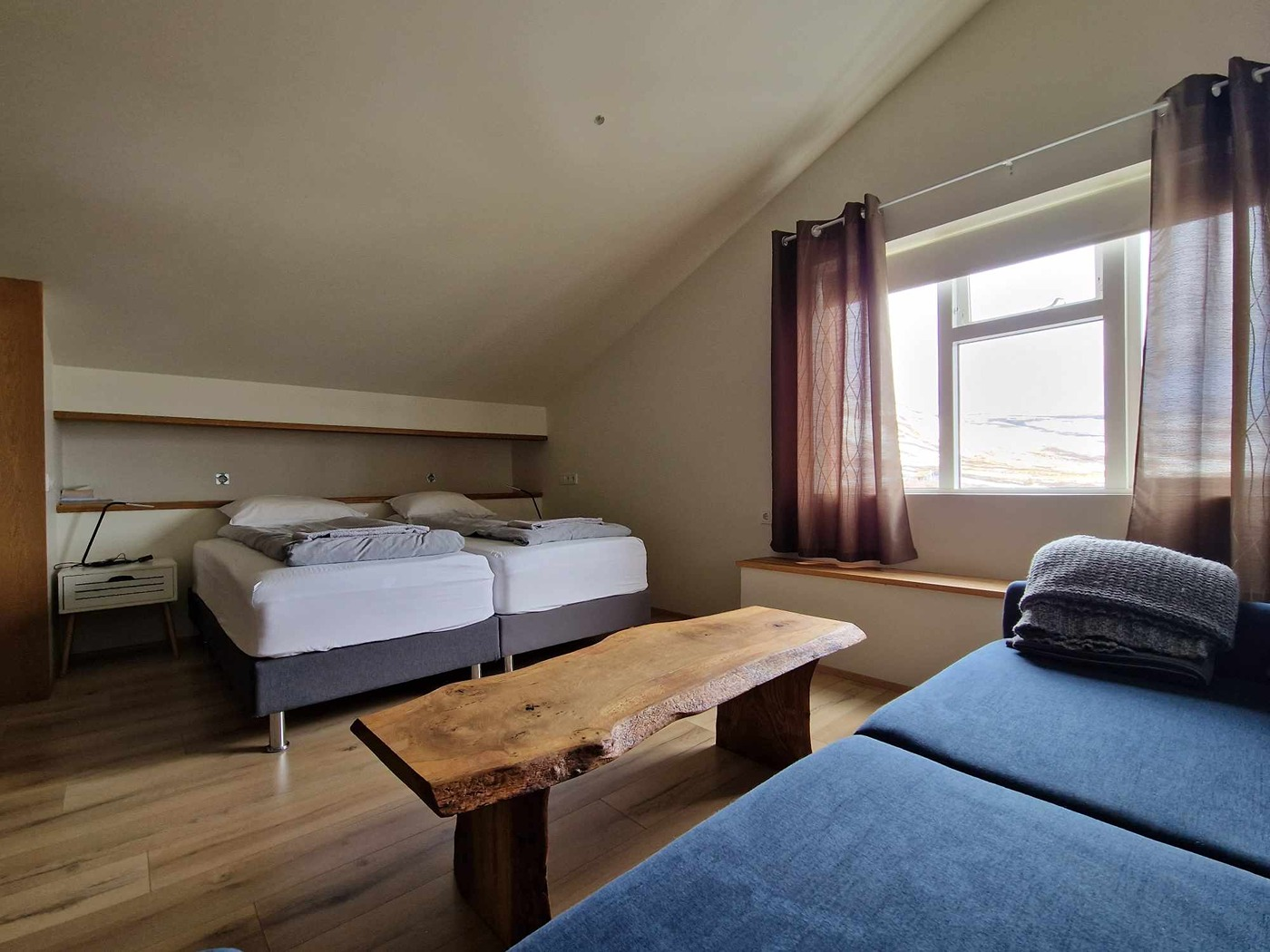 Svansholl Apartments is a peaceful retreat in Iceland's Westfjords, offering comfort and scenic views in one of the country’s most untouched regions. Ideal for couples, families, and nature lovers, each apartment includes a private kitchen, modern amenities, and views of surrounding valleys and mountains.