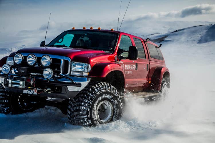On day two, you'll explore the beautiful Thorsmork valley. The terrain is rough, so you'll ride a 4x4 super jeep to get there. Super jeeps are vehicles that have been specially modified to drive through Iceland's challenging landscapes. They may have higher ground clearance and larger tires than other vehicles.