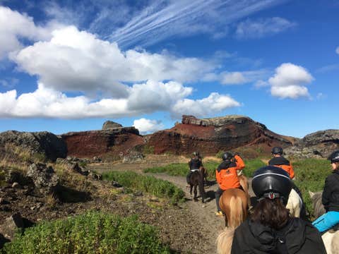 Next, you'll visit the fascinating lava formations of Raudhola. Also called the "Red Hills," Raudhola is a group of pseudocraters that are remnants of a volcanic eruption approximately 5,000 years ago. As your horse moves around the area, you'll notice the rocks' distinctive red coloration caused by iron oxidation within the lava.