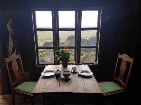 Laugavatnshellar caves are man-made caves, dug out of volcanic basaltic tuff. We're not sure who made them, but some speculate they have been there since the late 800's, housing the first settlers of this land. Lived in until 1921, the caves had been left empty, but now we have renovated the cave, restoring it to the cosy, homely glow they should carry, all in a historically correct fashion!