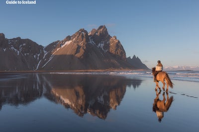 On day two, you’ll discover the hidden landscapes next to your guesthouse in Southeast Iceland. The day includes a hike on the scenic bay surrounding the Vestrahorn mountain and a unique kayaking adventure in the Heinabergslon glacier lagoon.