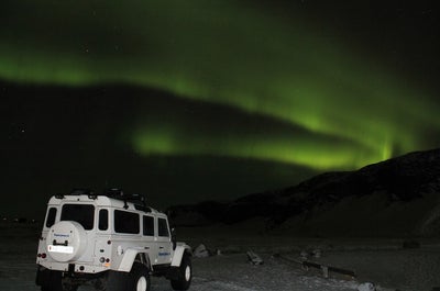 On your first evening, brace yourself for an enchanting private northern lights hunt in a super jeep. Venture into the Icelandic wilderness, where you'll have the opportunity to witness the mesmerizing northern lights dancing across the night sky. Enjoy complimentary hot chocolate and volcanic vodka as you immerse yourself in this once-in-a-lifetime experience.