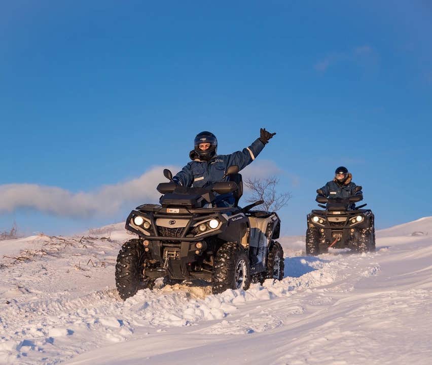 Your morning kicks off with the first part of your journey, a thrilling ATV ride. In the morning, a comfortable vehicle will pick you up from your hotel or a designated bus stop in Reykjavik and drive you to the ATV basecamp.