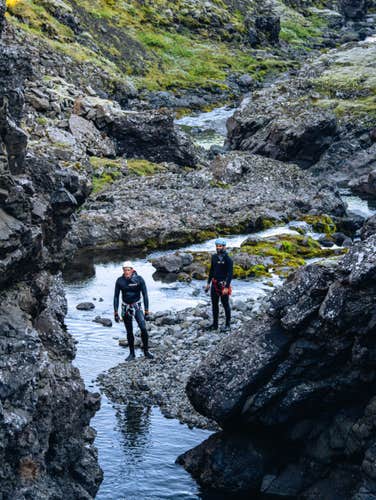 Once you’re geared up and ready to go, you’ll start with a short hike in Vatnajokull National Park. The park is home to incredible sights, including glaciers, ice caves, mountain ranges, and waterfalls. Taking part in a canyoning tour is a great way to experience the park’s beauty — jumping into pools, abseiling over cliffs and waterfalls, and wading through rivers.