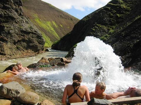 You’ll get a chance to bathe in the warm, geothermal waters of the pool in Hveravellir. Both hot and cold water flow in the pool, creating the perfect bathing temperature. The experience is only heightened by the beautiful views of Kjalhraun lava field and Langjokull glacier.