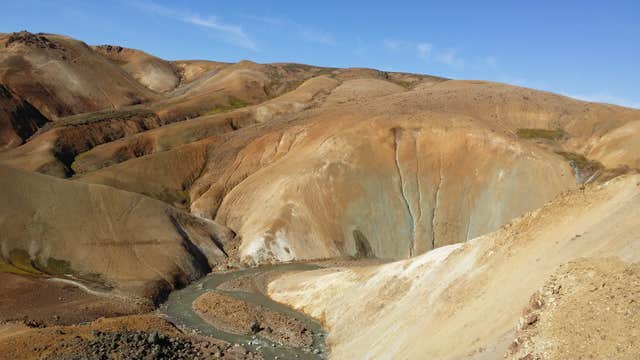 Immerse yourself in the wild Icelandic nature on this hiking tour of the rhyolitic mountains of Kerlingarfjoll in the highlands. Hike through the otherworldly landscapes, through geothermal valleys, and up kaleidoscopic hills, and take a dip in a natural, warm, hot spring.