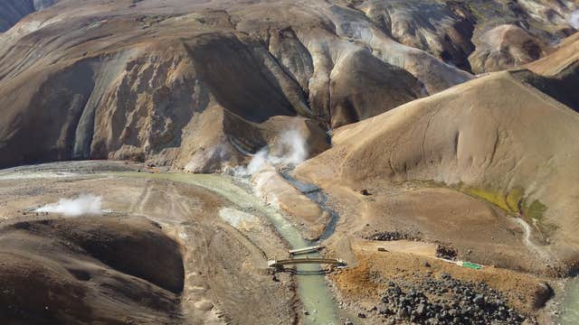 Your destinations, Hveravellir and Kerlingarfjoll, are located between the glaciers Langjokull in the west and Hofsjokull in the east. The geothermal area of Hveravellir is like an oasis situated between barren sands and mountains. It is dotted with colorful sinters, smoking fumaroles, and a hot pool with warm sky-blue water.