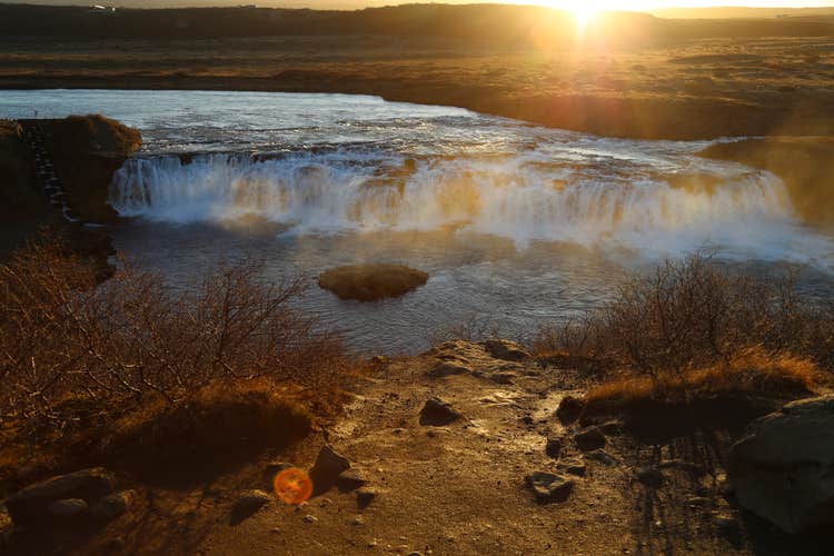 As you continue along the Golden Circle sightseeing route, you'll arrive at the stunning Gullfoss waterfall, which the Golden Circle is named after. Gullfoss means "Golden Falls."