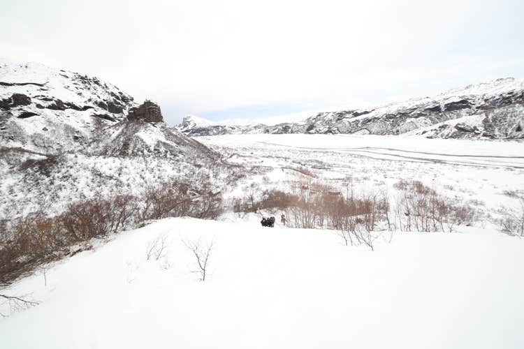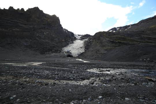 From here, you'll head to the Gigjokull glacier and hike to the edge of Eyjafjallajokull glacier. The Eyjafjallajokull glacier gained global attention during its 2010 eruption, which caused widespread disruption to air travel.