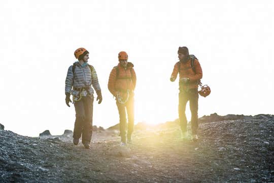 When you arrive at the ice cave, your guide will give you a thorough safety briefing and all the equipment you need for ice caving. The gear includes crampons, an ice axe, a harness, and a helmet with a head torch. You can also rent hiking boots if you don't have any suitable ones.