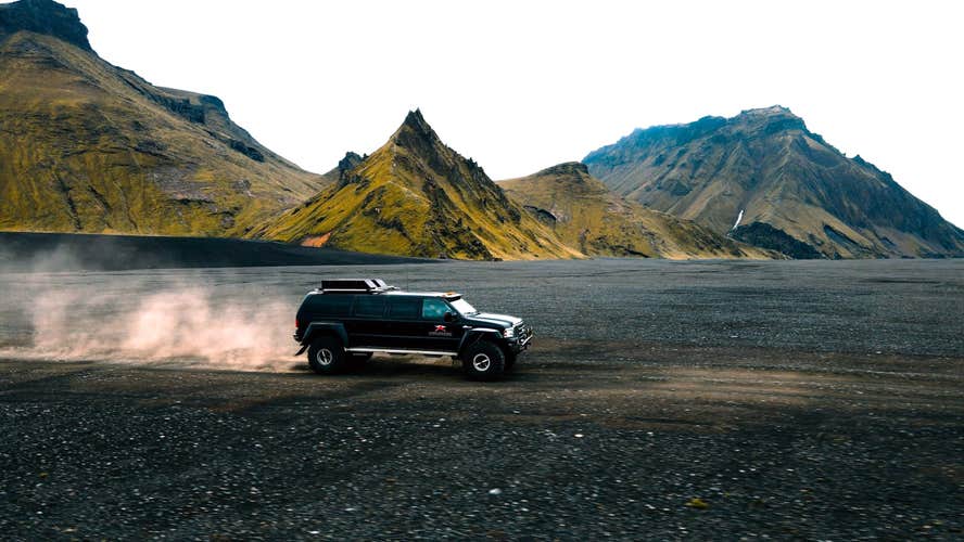 Ride across black sand plains and beneath towering glaciers toward Katla Ice Cave. Your guide shares insights into Iceland’s geology while navigating remote roads unreachable by regular vehicles. This journey takes you far off the beaten path to some of Iceland’s most untouched scenery.