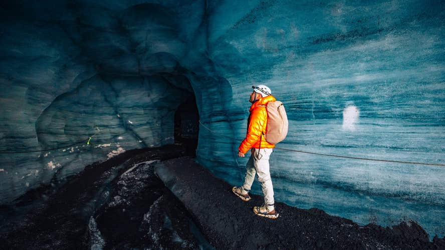 You’ll spend a full 45 to 60 minutes exploring and photographing the icy tunnels. Along the way, your guide shares stories of the glacier and the Katla Volcano below.