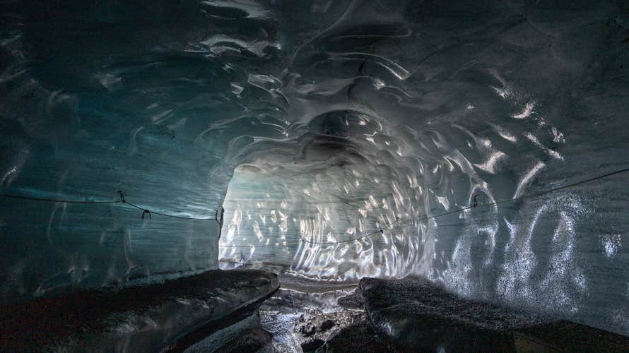 Inside, glowing blue ceilings and crystal-clear walls streaked with ribbons of volcanic ash create a captivating display. Towering chambers and sculpted formations shift with each season, so no two visits look the same.