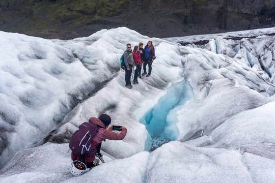To get all the way to the glacier we will have to drive over glacial moraine through rocky terrain that was previously shaped by the glacier until we get right to the foot of the glacier. Your guide will explain everything about the gear you will be using and also do a short safety briefing. After that you are ready to hike on the glacier!