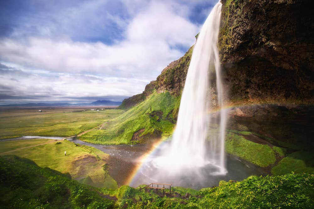 After enough time at the glacier, you will begin your return journey home; by no means the end of your adventure, however. You will next see Seljalandsfoss, one of Iceland’s most spectacular waterfalls. Seljalandsfoss is a rare example of where you can actually have a look behind the cascading water and come out on the other side