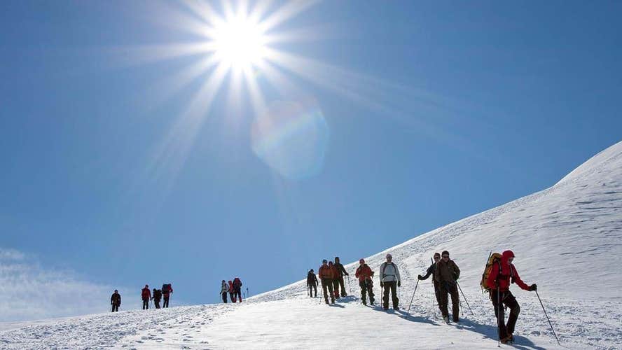 At 3,116 feet (950 meters) above sea level, you’ll reach the glacier, where you’ll rope up for safety and continue the climb across icy ridges and deep crevasses.