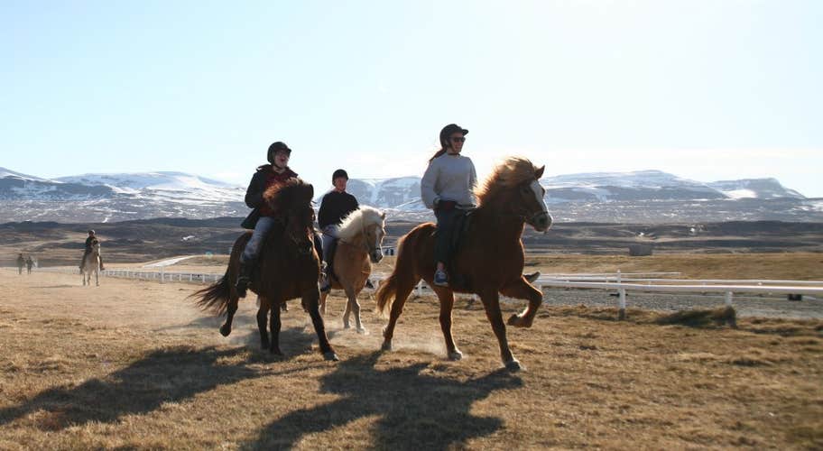 Your guide will give you a riding hat, rain gear, a snowsuit if needed, and a thorough safety briefing. The guide will show you the riding basics, including telling your horse to stop and go.