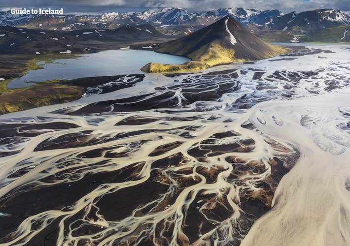 Surrounding Maelifell are the black sand plains of Maelifellssandur. This desert with volcanic sands and gravel is crisscrossed by rivers coming from the meltwater of snow and the nearby glaciers.