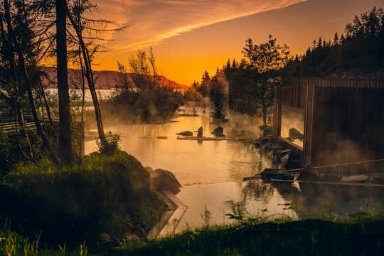 The Forest Lagoon is just 2.2 miles (3.6 kilometers) from Akureyri. It boasts a large warm pool, a smaller and hotter pool, a Finnish dry sauna, and a cold pool for the ultimate wellness experience. Your booking includes the admission fee, a towel, and access to all the facilities.