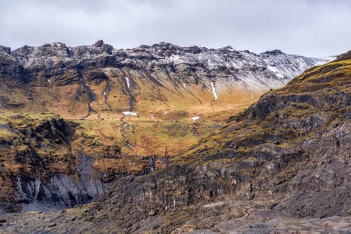 The tour's first marvel is Skogafoss, a towering waterfall where you can witness the power of nature as water plummets over 197 feet (60 meters) to the earth below. Feel the mist on your skin and listen to the thunderous roar.