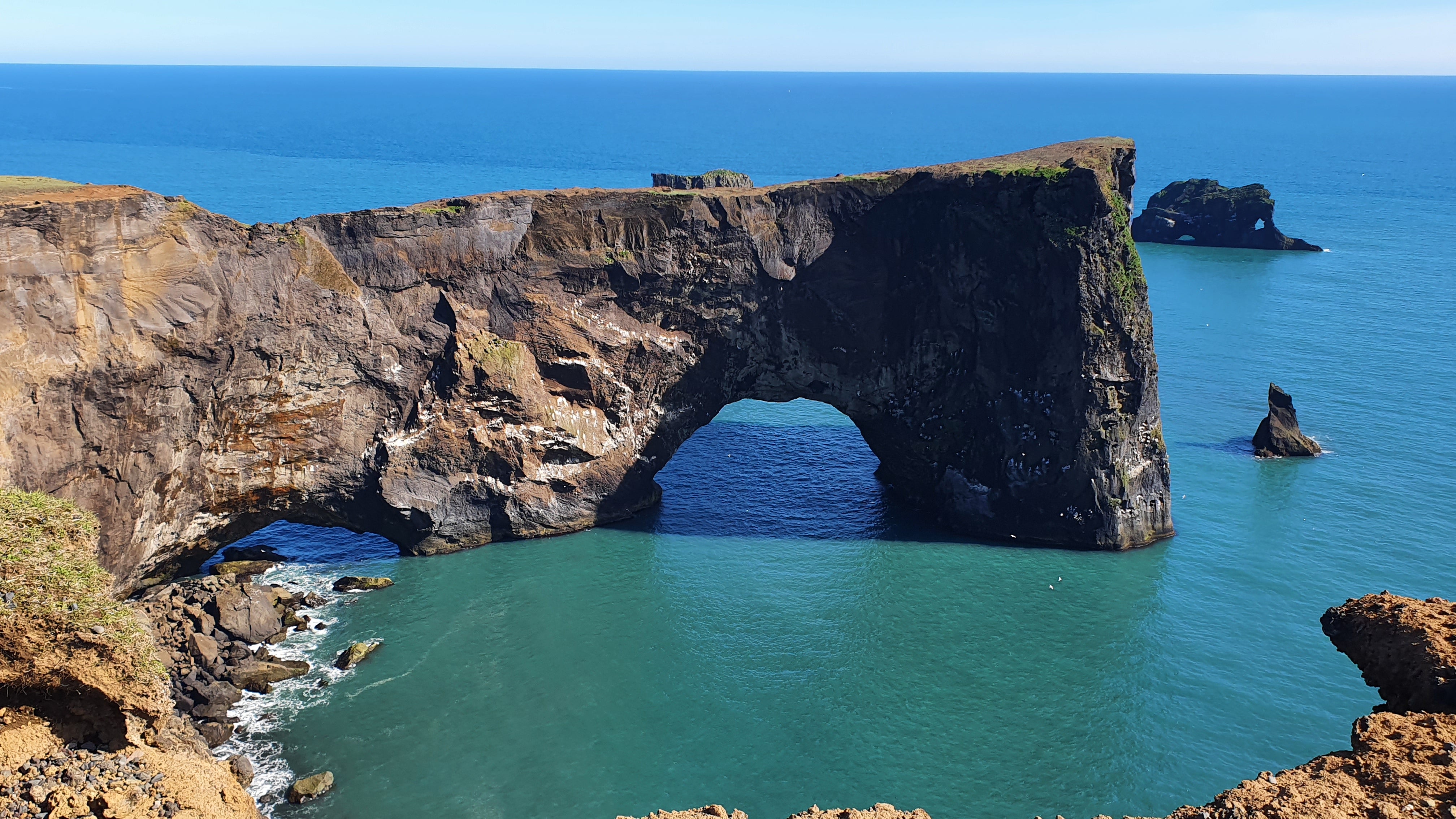 At Dyrholaey, the southernmost tip of Iceland, you’ll stand atop a cliff with sweeping views of black-sand beaches stretching for miles. Its striking sea arch is a natural landmark, and in summer, the cliffs become a nesting ground for puffins.