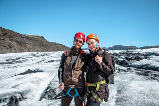 A breathtaking expanse of rugged scenery welcomes you as soon as you step on the ice. While taking in the icy wilderness of Solheimajokull glacier, your guide will assist you in suiting up with the glacier equipment. You'll get a helmet, an ice axe, harnesses, and crampons as part of the tour price.