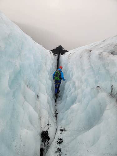 You’ll come across deep cracks in the ice that show clear shades of blue, along with moulins, which are natural holes formed as meltwater cuts through the glacier.