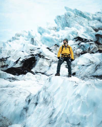 Upon reaching the glacier parking lot, your guide will give you all the necessary hiking equipment. The gear includes crampons, an ice axe, a harness, and a helmet with a headlamp.