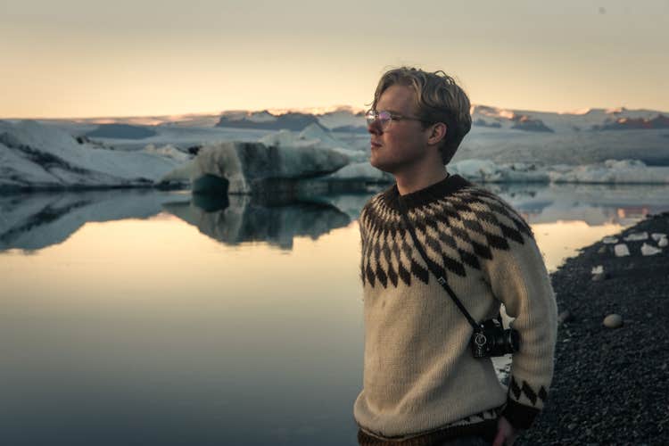 Once you’ve soaked up the majestic beauty at Jokulsarlon, you can visit the nearby Diamond Beach. It gets its name from how the chunks of ice scattered across the black sand glitter like diamonds in the sunshine. This is a perfect background for more photos!