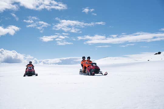 Upon arrival at the snowmobile base on Langjokull, an expert guide will welcome you. They provide essential safety equipment, including a warm coverall and helmet, to ensure comfort and protection throughout the excursion. The guide will also give clear instructions on operating the snowmobile, catering to beginners and experienced riders.