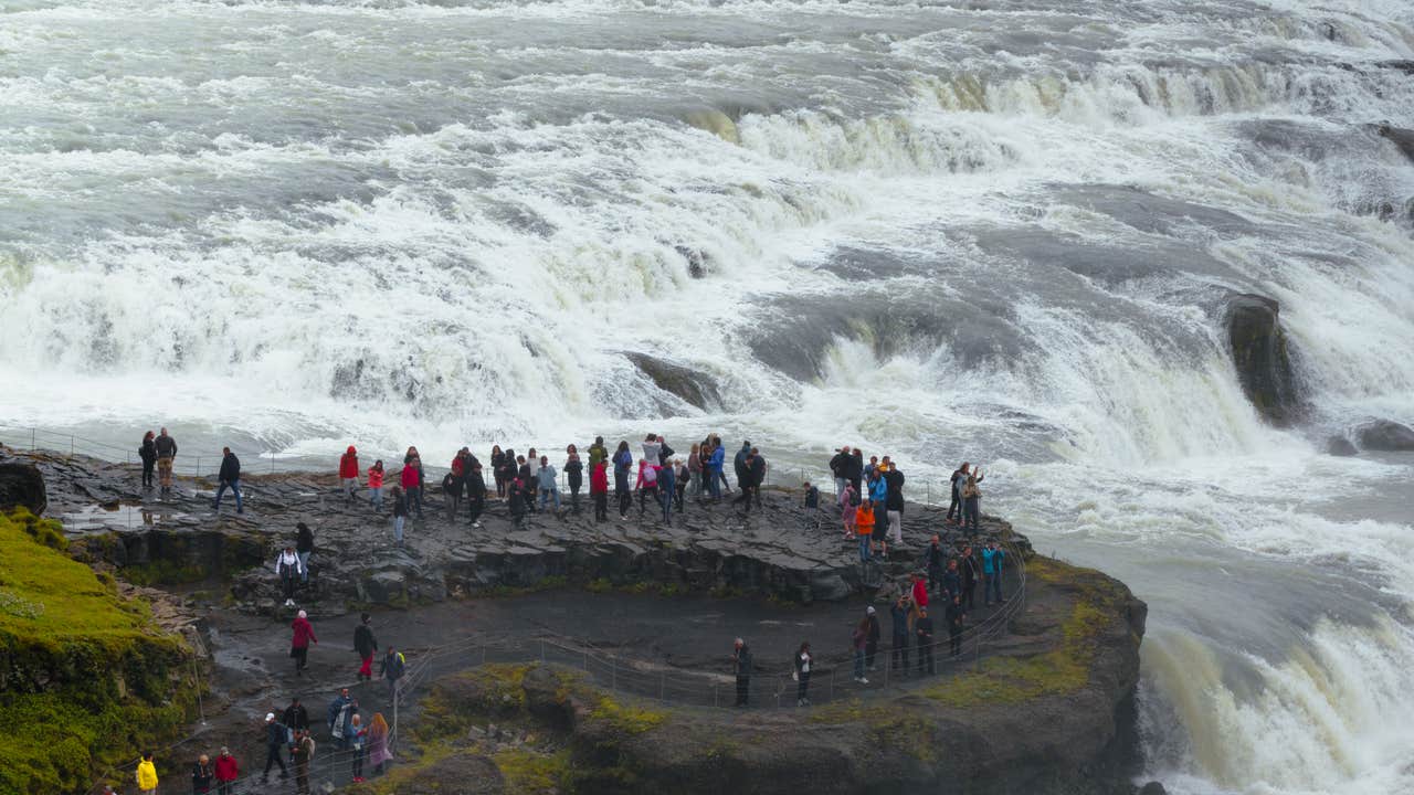 At Gullfoss Waterfall, glacial waters plunge in two tiers into a narrow canyon, creating a powerful spectacle. Feel the mist on your face, hear the roar of the water, and watch rainbows form on sunny days. Safe viewing platforms and paths that bring you close to the action.