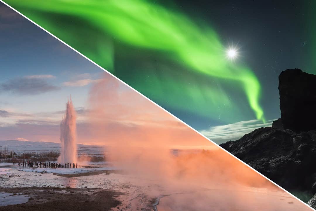 This sightseeing tour has two parts. The first part includes visiting the Thingvellir National Park, Geysir Geothermal Area, and Gullfoss waterfall, while the second leg is hunting for Iceland's beautiful northern lights.