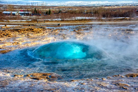 After your Thingvellir sightseeing, you'll travel to the Geysir geothermal area. Check out Strokkur, its most active geyser, which erupts every five to ten minutes. This ensures you won't miss the feature go off, especially if you want to take a picture with the enormous column of steam.