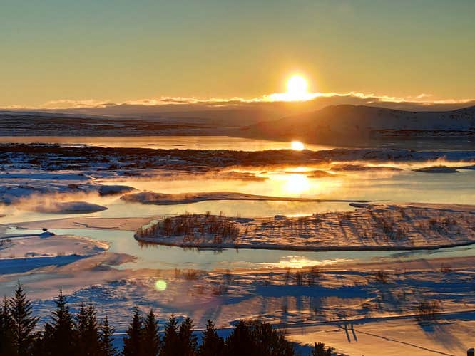 You'll begin with a visit to the National Park Þingvellir, where the Icelandic parliament, the Alþingi, was founded by Vikings in the year 930 AD. The park is very interesting with geographical and historical significance. Here you can see the effect of the shift of tectonic plates that run through Iceland, which have opened large holes and cracks in the crust.