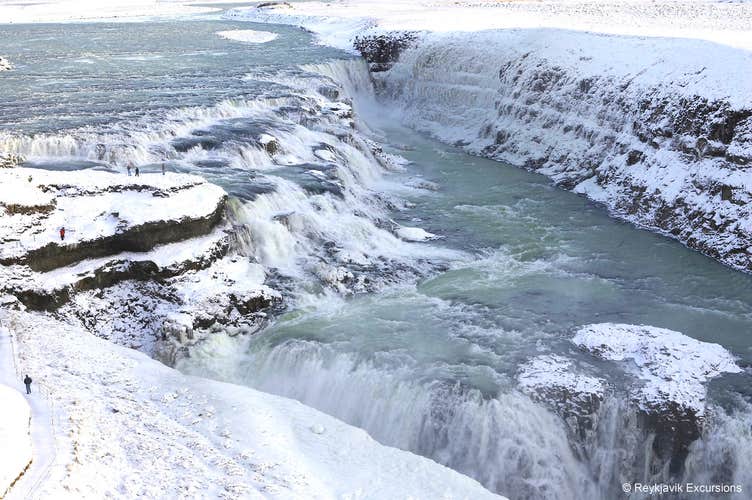 The last stop for your Golden Circle tour is the Gullfoss waterfall, one of the most iconic and majestic in Iceland. The waters of Gullfoss waterfall come from the Langjokull glacier, which flows through the Hvita river before cascading in Gullfoss waterfalls' two-level cascade.