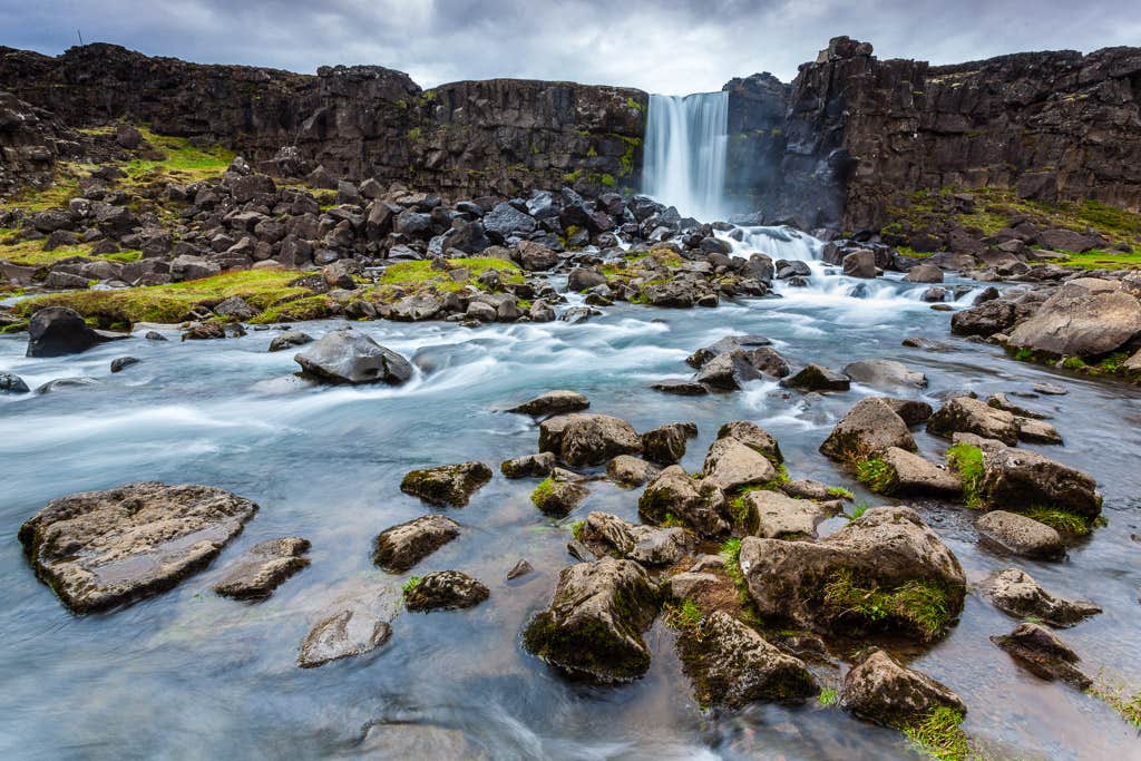 The tour begins at Thingvellir National Park. This UNESCO site is northeast of your starting point in Reykjavik. Here you can capture breathtaking photos between the North American and Eurasian tectonic plates, a spectacular landscape of crevasses, broad valleys, and rock formations.